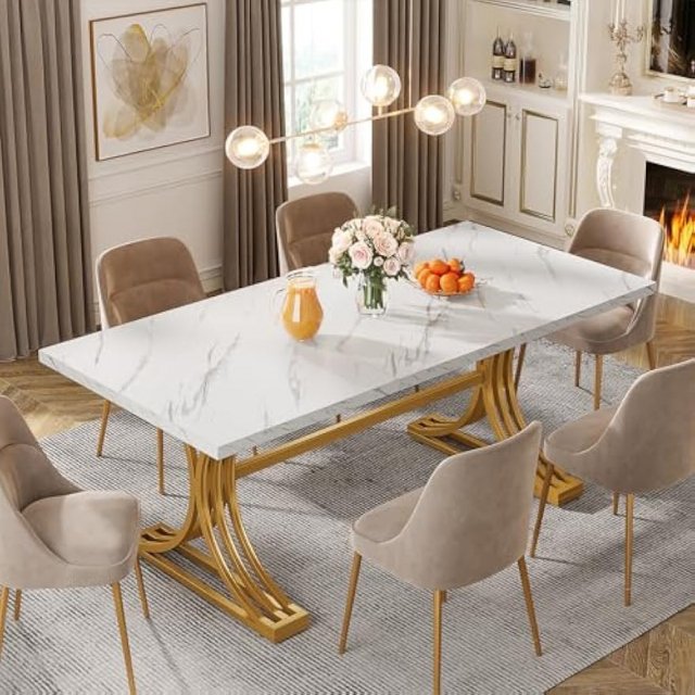 From everyday meals to special gatherings, this dining table set is sure to impress. The spacious 63-inch table comfortably seats up to six people, while the ergonomic chairs ensure that everyone can enjoy their meal in comfort. Whether you’re serving dinner or simply sipping your morning coffee, this set provides an inviting space for any occasion.